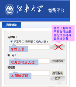 缴费说明:进入复试考生在公司规定的时间内登录“williamhill缴费平台”交纳复试费用,复试收费标准:80元/生。缴费网址:http://pay.jiangnan.edu.cn/payment/。登录账号为准考证上的考生编号,登录密码为身份证后六位(友情提醒:考生账号已开通,切勿自行注册)。按照提示交费(使用网银),并打印或截图保存付费凭证。