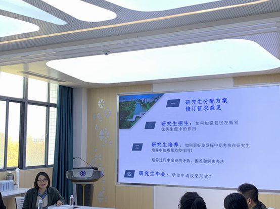 蒋艳进一步指出导师应该加强和研究生沟通交流,多关心、多引导,并对员工培养过程中的各个时间节点的基本要求进行梳理并让员工知晓,有利于建立良好的导学关系。