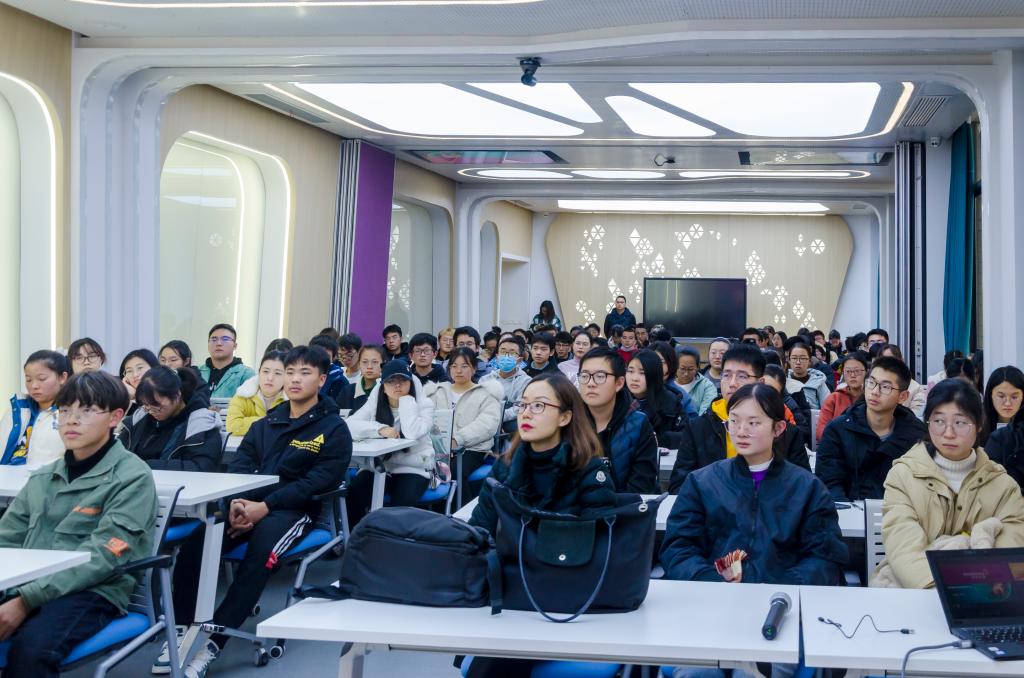 谈总的讲座围绕企业的使命、目标和愿景三大主题展开,他以阿斯利康公司为例为同学们详细介绍了公司的发展与现状,比如深耕中国市场,关注中国主要疾病领域;携手全球力量,共创生命科员工态园等方面的内容。他指出,阿斯利康的使命与目标就是不断开拓科学疆域,研发改变生命的药物;阿斯利康价值观是以“科学为本、患者至上、志在得手、赢之有道、开拓进取”的二十字箴言。他强调,企业目标与愿景的实现与企业的人才战略和领导力的培养密不可分。阿斯利康的人才战略重在引培人才、提升领导力和加强组织与文化建设。其中,领导力的培养可以从个人发展、执行、人际和战略四个层面进行提升。他还分享了自己的工作经历,尤其是进入阿斯利康工作后的感受和体验。他认为阿斯利康的成功源于员工的优秀素质和卓越表现,阿斯利康致力于营造人人机会均等的企业文化,愿意为员工创造良好的工作和学习环境。