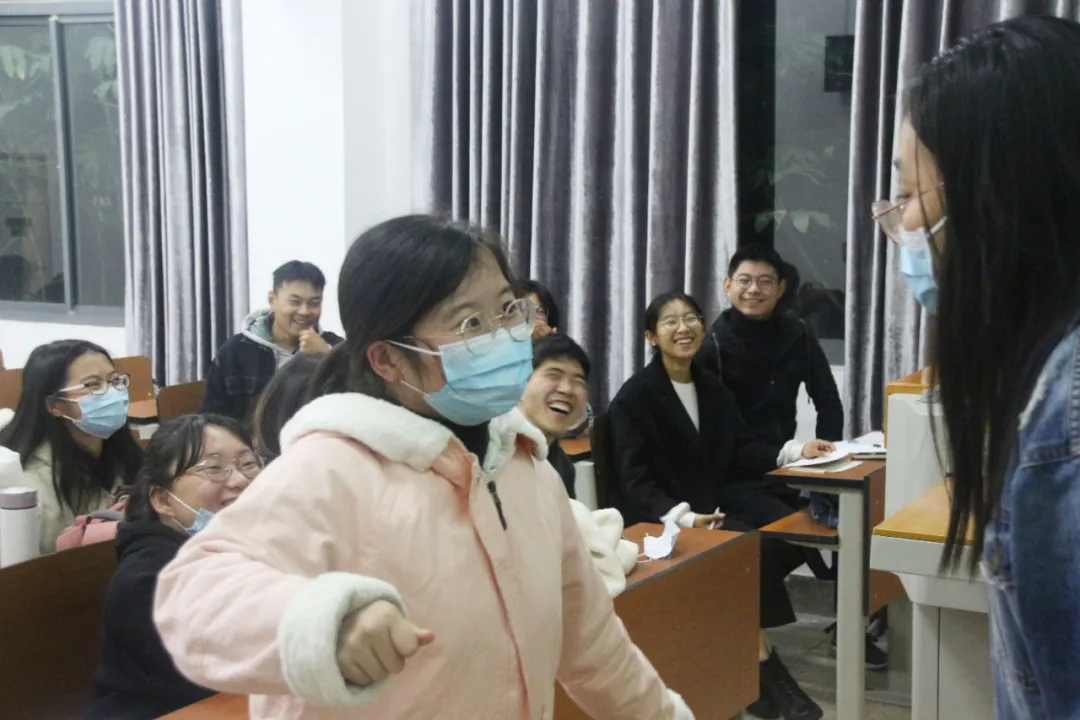 决赛于11月27日18:00在一教1B116展开,游戏环节包括拍七令、眼疾手快、默契考验、成语竞赛、看图猜谜、海龟汤,每轮由各游戏主持人宣布规则后,各队派出成员搭配完成游戏,此过程充满了欢声笑语。热身赛拍七令活跃了气氛,激起参赛者对游戏的兴趣。接下来的眼疾手快考验了抢答的手速和成语的储备量;默契考验充分展现了队友之间的默契度;成语竞赛过程的手势互动和语言描述在倒计时中显得尤为紧张;看图猜谜打开了同学们逻辑思维的脑洞。随后,在统计总分时,作为上一届趣味挑战赛最刺激的游戏--海龟汤--再次出场给参赛选手体验还原案件的头脑风暴。比赛结束后,主持人宣布最终比赛结果并为各队颁发奖品。