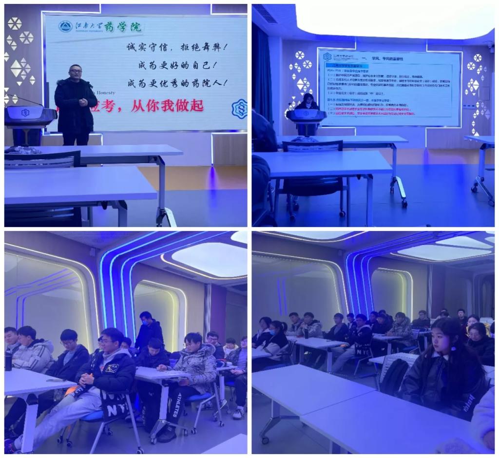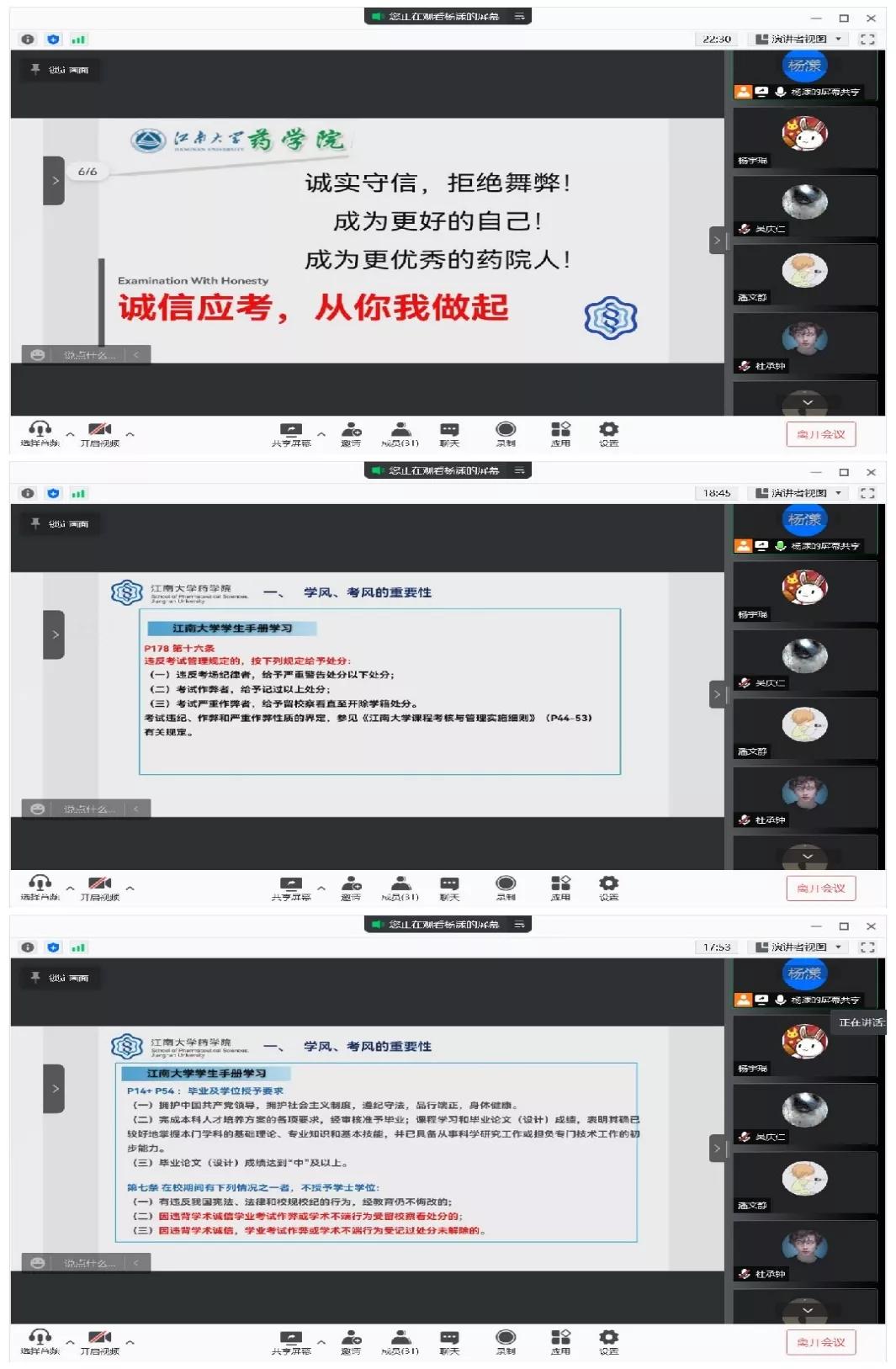 班长韩鑫霞讲解了药公司学风建设大会相关内容:学风,学风建设及考风的有关内容,江南老员工学习手册;毕业及学位授予要求,违反考试规定给予相应处分,什么行为将被视为考试严重作弊,贾础宁同学向大家陈述了自己的对考风考纪的理解。制药2102班邀请了班主任吴湘娟老师进行考风考纪教育,进一步补充了员工考试守则;学姐高思诺进行经验分享,对往年考试的理解与经验。全班在会议最后签署诚信应考书。大家都对诚信考试有了更深的理解,也对自己有了更高的要求。相信大家都会诚信考试,努力考出自己最好的水平。