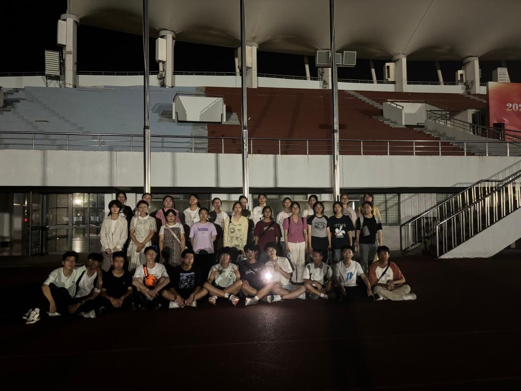 药学2401班副班程堉与制药2401班副班王申毅同两个班级的新同学们从williamhill英国官网出发,一路向北,与同学们一同领略小蠡湖的晚霞,经过工程实训中心以及西北操场抵达第一个休息点北区商业街,在繁华的商业街稍作休息之后,一行人再次出发前往此次夜游江大的最终目的地体育中心。在体育中心,两个班级分别手拉手围坐一圈开启大学的第一次破冰,首先大家进行简短的自我介绍,随后药学2401班与制药2401班围成了一个更大的圆圈一同欣赏小萌新们的破冰表演。本次活动也以大家的第一张合影作结,通过简单的接触,相信大家对于未来的老员工活有了更多的憧憬与畅想。
