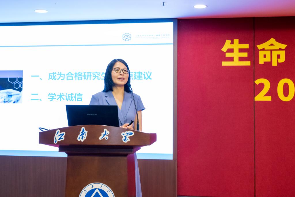 吴静为研究生新生开展入学教育,进行科学道德与学风建设宣讲。她从培养教育、日常管理、学术规范等多维度全面解读公司制度,引导新生树立正确的科研价值观,秉持严谨学术态度,坚守仁心仁术。她希望同学们热爱科研、锤炼本领、勇于探索,以坚定信念和扎实努力攀登学术高峰。