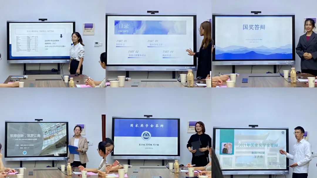 此次答辩分为员工展示、评委提问、现场评分和老师点评四个环节。现场答辩占总成绩的30%,展示时间为4分钟。参加答辩的谢雨思、胡霜霜、郑可欣、茅洪维、王鹏威、冯于敏6位同学,按照事前抽签决定的顺序,依次答辩。在短短4分钟的答辩时间里,他们尽情地展示自我风采:作为国家奖学金的候选人,他们不但学习成绩在全年级名列前茅,而且在思想品德、学科竞赛、科研创新、员工工作、志愿服务、社会实践、文体活动等各个方面都有较为突出的表现,在各方面都取得了丰硕的成果,展示出了自己独一无二的大学成长、收获和风采。孜孜不倦、勇于突破的学习态度,一丝不苟、精益求精的科研态度,敢于担当、乐于奉献的社会责任感……鲜衣怒马,此间少年,他们精彩的经历展示和胸有成竹的答辩,给现场的评委老师们留下了深刻的印象。随后,各评委老师向候选同学提出问题,同学们也应答如流,充分展现了他们骄人的成绩和拼搏的风姿。