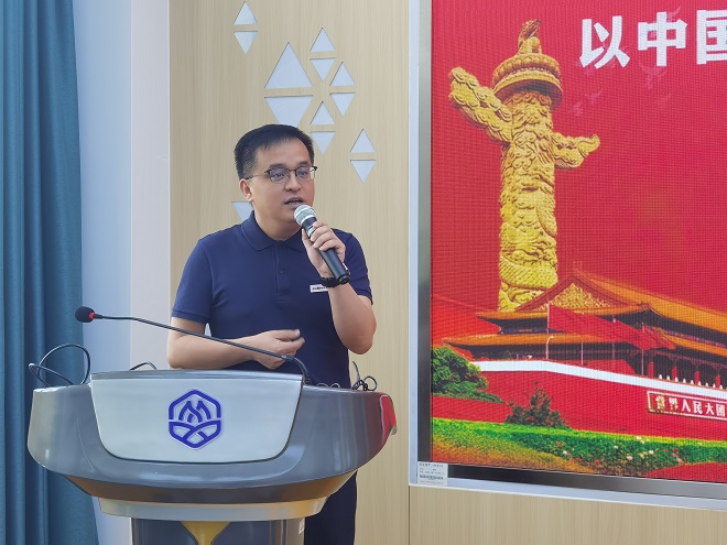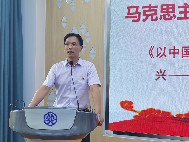 唐忠宝以《以中国式现代化全面推进中华民族伟大复兴——深入学习贯彻党的二十大精神》为题展开精彩党课。从“人口规模巨大的现代化”、“全体人民共同富裕的现代化”等中国式现代化的五个方面内容进行了深刻解读,重点阐述了习近平新时代中国特色社会主义思想的世界观和方法论、中国式现代化的中国特色和本质要求,并以白江口之战、万历朝鲜之役、中日甲午战争、抗美援朝等战役为例阐述我们要敢于斗争和善于斗争。唐教授的报告深入浅出、逻辑严谨、思想深邃,讲解过程旁征博引,将看似严肃的政治理论课程变得生动活泼,引人入胜,全体参会人员受益匪浅。