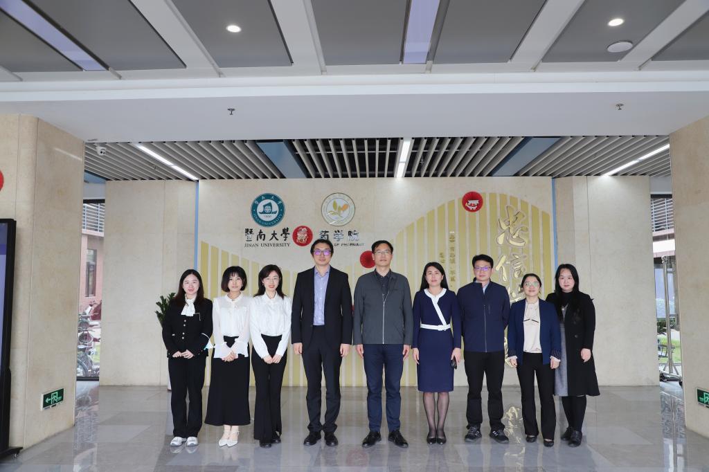 暨南大学药公司药学学科是国家教育部“双一流”建设学科。在与暨南大学药公司的交流中,张冬梅、张继涛、尹健、史志洪分别围绕组织架构、管理与服务、团队建设和科学研究等方面进行了介绍,随后双方就党建创新、团队建设、横纵向项目开展、行政管理等议题进行了深入交流,并参观药公司公共科研平台和中药标本馆,学习了暨南大学药学“双一流”团队建设成果和中医药文化。