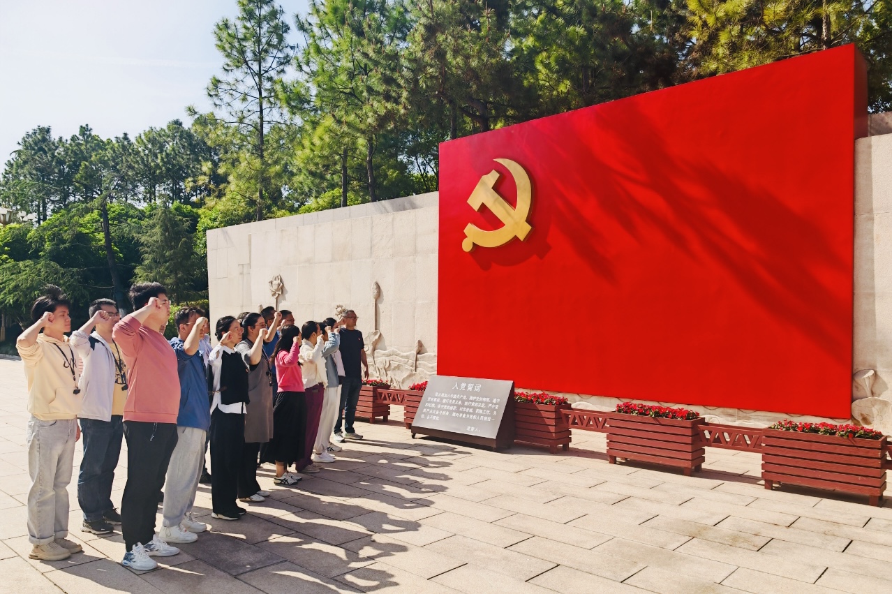 在南湖革命纪念馆,师生一行先后走进“救亡图存”“开天辟地”“光辉历程”和“走向复兴”四个展厅,系统回望了中国共产党从诞生到带领全国人民取得革命、建设和改革伟大胜利的光辉历程。一件件珍贵的文物、一幅幅生动的图片,无声地讲述着革命先辈们在严酷环境下如何以铁的纪律锻造队伍,如何在逆境中坚持信念、不懈奋斗,这些历史瞬间鞭策每位党员自我反省,不断提升遵守党纪的自觉性和坚定性。随后,师生党员来到庄严肃穆宣誓广场,面向鲜红党旗,以铿锵之声重温入党誓词。铮铮誓言在纪念馆北广场回响,传递着新时代党员对党的信仰与忠诚。