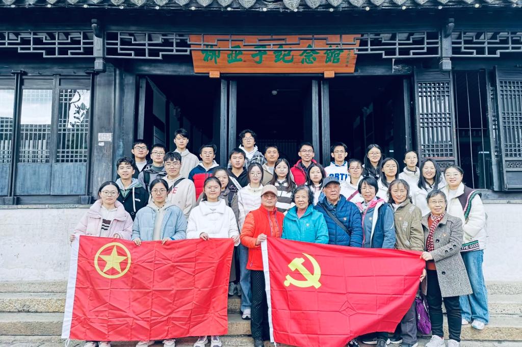 伴随着黎里古镇桂花阵阵飘香,师生一行前往徐悲鸿艺术馆、张应春革命事迹陈列馆、柳亚子纪念馆,了解这三位古镇上的铮铮铁骨,缅怀他们曾为新中国成立和艺术文化传承发展做出的贡献。徐悲鸿艺术馆内,这些极具艺术价值的作品,为师生们呈现出一场又一场浸润心灵的艺术盛宴,感受党领导下的文化工作者用作品抨击旧社会和侵略者,讴歌新时代的光辉历程。在张应春革命事迹陈列馆,通过书信、照片、纪念性文字等物件展现了张应春烈士短暂而英勇的一生,让那个坚定、勇敢的女孩穿越时光站在师生面前,迎春而生,落为秋实。在柳亚子纪念馆,一件件珍贵的展品,一首首豪放的诗词,一个个背后的故事,将大家的思绪带入了百年来中华民族为争取独立民主自由解放而奋斗的壮丽画卷,领悟先辈们顽强不屈的斗争精神。“每一位先辈,都是一座精神的丰碑;每一次对他们的缅怀,都是一次思想的洗礼。”党支部成员邱根洪这样说道。