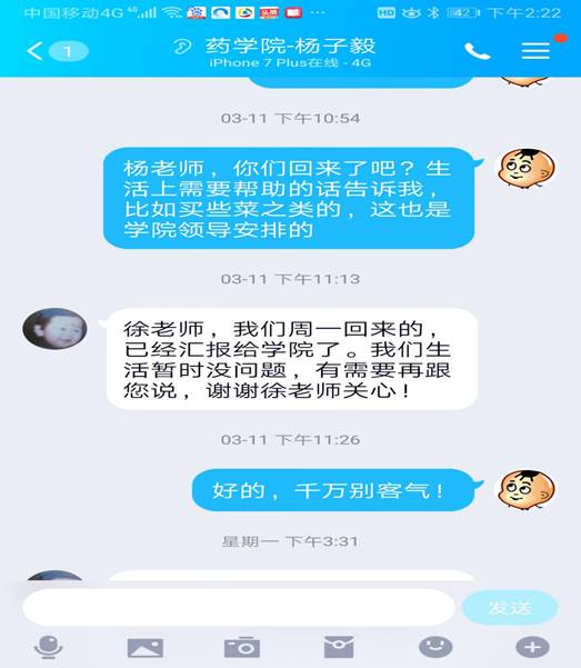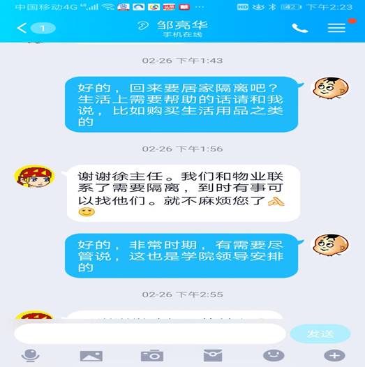 二月初,陆续有教师从外地申请返校。“疫情就是命令,防控就是责任”。为了使居家隔离的教师能安心生活,公司领导对每一位返回无锡的教师第一时间给予慰问,询问在生活方面是否需要帮助。对于需要帮助的教师,安排物资保障组落实教师的要求,使居家隔离教师能够安心生活。前后总计共给20余位教师发出帮助提示,给一位教师2次提供生活物资采购帮助。