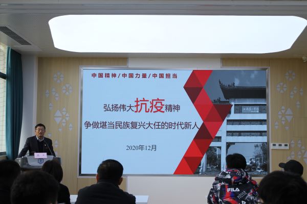 抗疫精神是爱国主义、集体主义、社会主义精神的传承和发展,可以高度概括为生命至上、举国同心、舍生忘死、尊重科学和命运与共。在抗疫过程中涌现出一批批英雄,比如敢医敢言、勇于担当的钟南山院士;义无反顾、冲锋在前的武汉金银潭医院经理张定宇医生;更有身边的榜样无锡市首批援鄂医疗队队长吴小龙医生等。陈董事长勉励全体员工,向英雄致敬,向他们学习,深入贯彻抗疫精神。最后,陈董事长总结了目前中国疫情防控常态化的举措并对呼吁同学们争做硬核青年,彰显青春的蓬勃力量,更要正确认识世界和中国发展大势,既树立远大抱负,又要脚踏实地,用勤奋拼搏出人生的最美图景。
