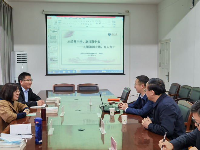 4月7日下午,药公司党委书记陈霞雯带队,党委副书记白冰、党委专职组织员葛玲一行赴武汉大学社会公司就三全育人、党建与思想政治教育、师德师风建设等内容进行交流调研。