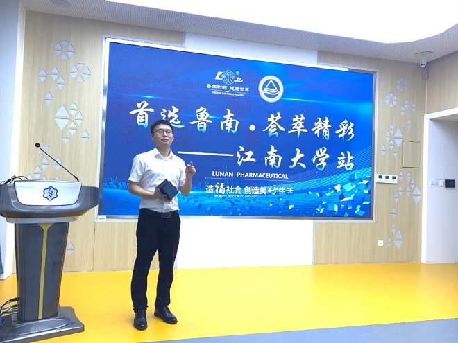 沂蒙精神宣讲结束后,鲁南制药人力资源部韩炜炜经理向与会的同学详细介绍了公司现状、发展远景、员工福利、实习生招聘等内容。药公司党委副书记、副经理白冰,办公室主任徐贻学,药学系主任邱立朋等还参加了校企座谈会,双方就科研合作、研究生联合培养、暑期实习、夏令营等方面展开深入探讨并达成初步合作意向。