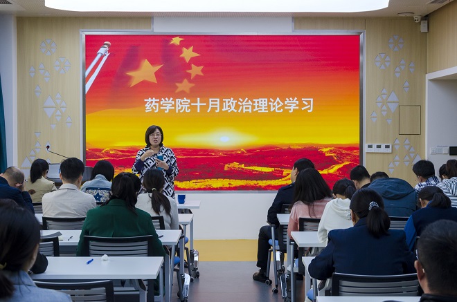 接下来是全体教职工大会和十月份政治理论学习,会议由经理陈敬华主持。会上书记陈霞雯领学了习近平总书记给全国高校黄大年式教师团队代表回信,观看视频《感动中国人物——黄大年》。她指出:作为药公司教师,我们既要有敢为人先、勇于探索、开拓进取的勇气,又要有淡泊名利、甘于奉献、严谨治学的精神,要做到习近平总书记要求的那样,真正把为学、为事、为人统一起来,当好员工成长的引路人。