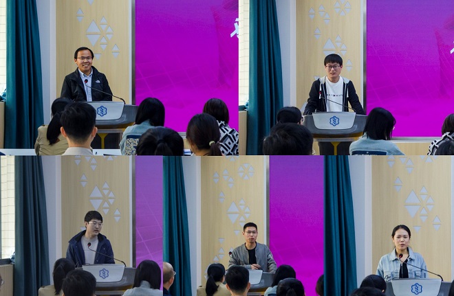 随后,2021年新入职教师周志、陈曦、胡贵鹏、丁争文、苏畅纷纷发表入职感言。分别介绍了自己的毕业院校、专业方向、目前从事的研究课题等,并表示会尽快适应新环境,更好地融入工作团队,勇挑责任和担当,做好员工的引导者、领路人。