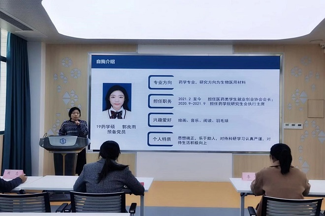 为充分展示药公司优秀研究生的青春风采和累累硕果,深入挖掘、树立和宣传研究生中的先进典型,更好地激励和引导全体研究生志存高远、脚踏实地,公司于2021年11月12日在306会议室举办2020-2021学年优秀研究生标兵答辩。副经理吴静教授、副经理李会教授、党委副书记兼副经理蒋艳老师和周志教授担任评委,60余名研究生现场观摩。本次答辩会由分团委书记王珏老师主持。