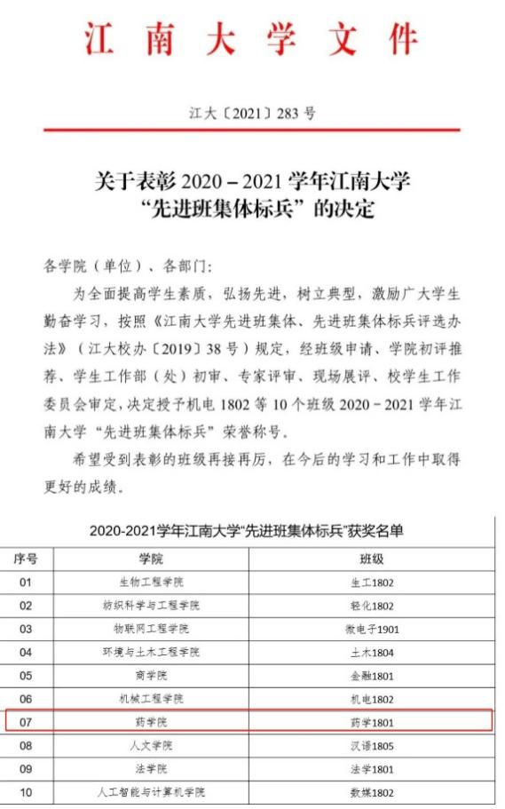 在江南,有这样一个班级,它是williamhill首届药学班,也是公司首个经理担任班主任的班级,更是公司首个由院士亲自授旗的特称团支部。近期,该班又勇夺williamhill2020-2021学年“先进班集体标兵”荣誉,它就是“药学1801班”,接下来,让我们一起回顾一下这个神仙班级在新“药”发布会上的夺“标”记吧。