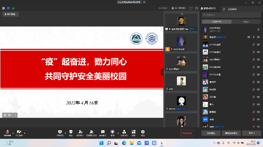 会议伊始,蒋艳介绍了本期入党积极分子培训班的计划内容与要求。她以《“疫”起奋进 勠力同心,共同守护安全美丽校园》为主题,以公司公司各条线师生员工夜以继日的防疫工作与保障运行为生动实例,结合公司最新的疫情防控政策和公司封闭管理的各项措施,号召积极分子要以身作则,充分认识到校园疫情防控的重要性,带头并带动身边同学严格遵守校内防疫要求,理解珍惜来之不易的校园防疫成果。她强调要关注自身及同学的身心健康,倡导健康生活方式,提高线上听课效率,老师不能进校的情况下,尤其要加强实验室安全,“疫”起奋进,才能“疫”往无前。