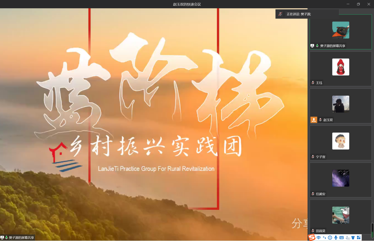 来自理公司的“蓝阶梯”乡村振兴实践团的樊子源队长讲述了他们与莫洛村的奇妙相遇。团队传承着“星焰计划”的理念,以镜头为眼,见证脱贫攻坚成果,记录乡村振兴进程,通过拍摄制作纪录片的方式把莫洛村当地的基层建设、产业发展、文化振兴、组织建设等方面的优秀经验整合剪辑成一个个活泼积极、诙谐幽默的视频,向广大青年传递正能量。
