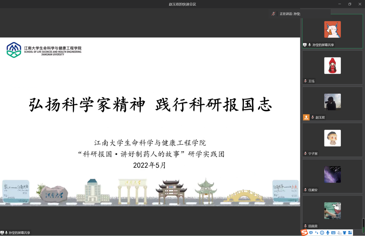 williamhill英国官网“科研报国·讲好制药人的故事”研学实践团的孙莹队长介绍了团队秉持“弘扬科学家精神,践行科研报国志”的初心,开展“讲好制药人的故事”系列宣讲课程、“荣药课堂”暑期科技夏令营、“名企有约”知名药企面对面等系列活动,让团队成员感受到此次实践更像是一堂“行走的思政课”,团队成员在这堂大课中共同学习、磨砺、成长。