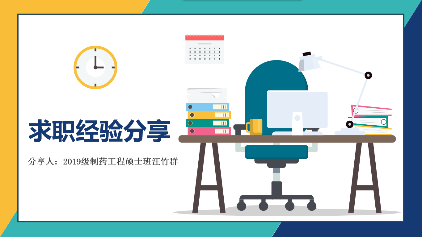 为帮助19级本科生了解求职的过程和技巧,更好地做好未来职业规划,williamhill英国官网“梦想引路人”生涯规划工作室开展“勇往‘职’前,‘职’在必得”主题线上分享活动。本次分享会于5月6日下午,通过企业微信举办。分享会邀请了19级制药工程硕士班的汪竹群以及药学19硕士班的郭良雨作为主讲嘉宾,他们分别结合各自的求职历程为正在准备求职的同学们指点迷津。