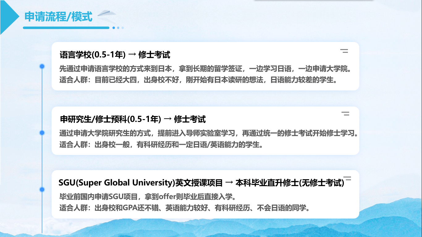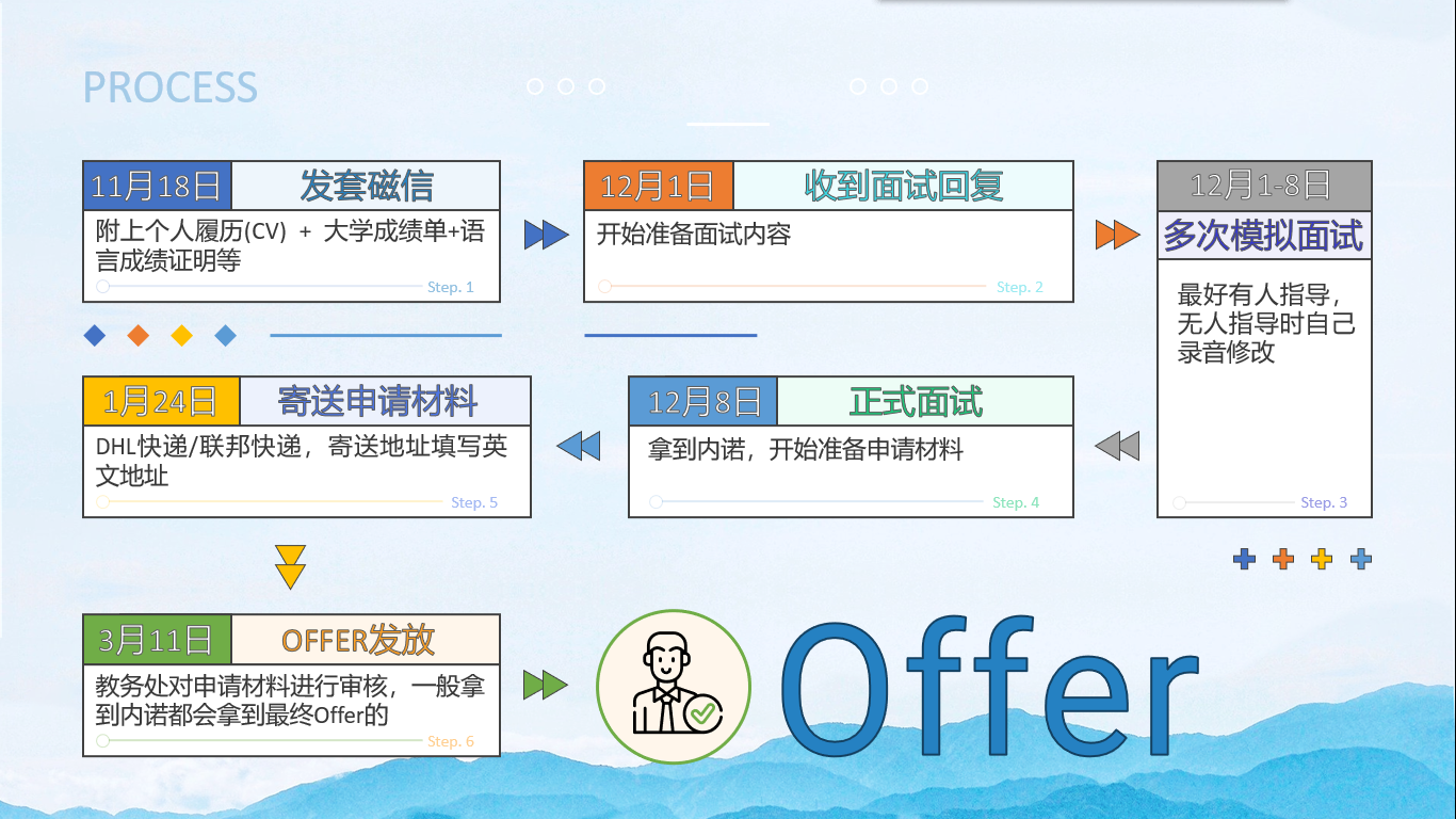 邢健首先介绍到,出国留学能在更小的竞争压力下,付出与考研或保研同等的努力,读到更好的大学,体验不同的教育模式。随后,邢健以日本留学为例进行了留学的申请流程讲解。他着重介绍了申请材料中需要撰写的套磁信的组成,其中包括了申请理由、个人经历、学习情况等。在受到公司的反馈后就要开始准备面试。他建议同学,要提前告知面试语言,提前登录Zoom测试面试环境,科研经历一定要以PPT的形式呈现,同时还要进行5次以上的模拟面试,一定要早做规划、早做准备。