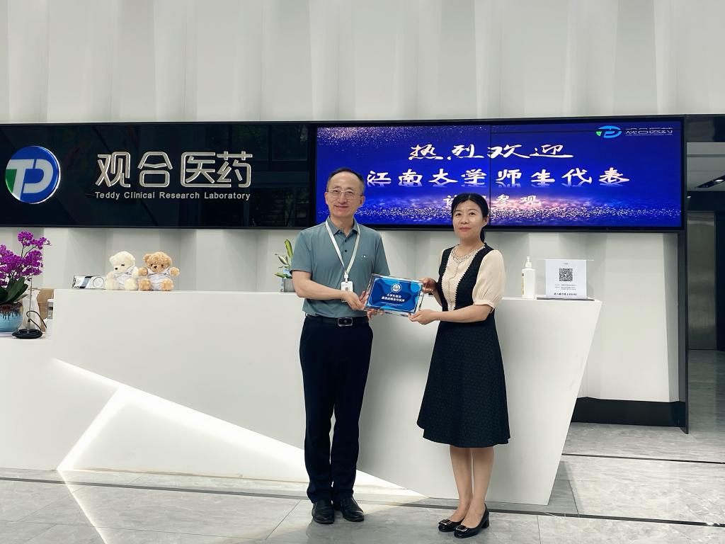 6月23日下午,公司党委副书记兼副经理蒋艳、副经理李会、惠人杰老师带领本硕博员工代表,赴观合医药开展访企拓岗走访调研活动,与公司CEO、创始人徐颐、Co-CEO张天谊、副总经理燕智等企业高管交流座谈。