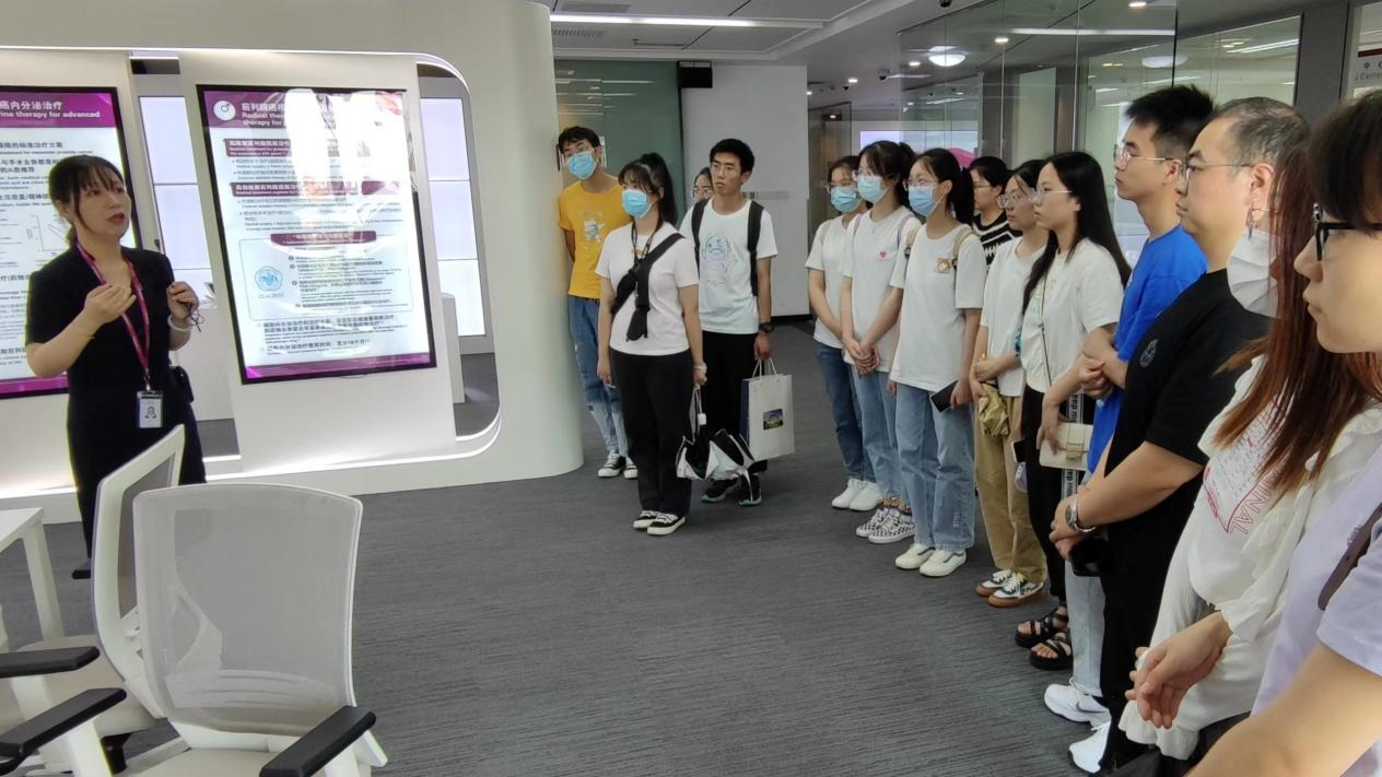 阿斯利康(无锡)党委书记邢其山、销售副总监兼无锡市生物医药行业团工委书记俞嘉伟带领公司师生一行参观了中国健康物联网创新中心,展示了智能雾化中心、胸痛中心、慢性肾脏病全程管理中心、标准代谢性疾病管理中心、呼吸与危重症医学科等创新诊疗方案,介绍了从患者的全病程需求出发,运用前沿科技打造诊疗一体化模式,以实施全病程整体解决。通过实地参观,同学们进一步了解了企业的发展现状、研发实力、产品服务、特色优势、企业文化和未来规划,深刻认识到医药产业前景广阔、医药行业大有可为,坚定了立足专业就业的信心和底气。