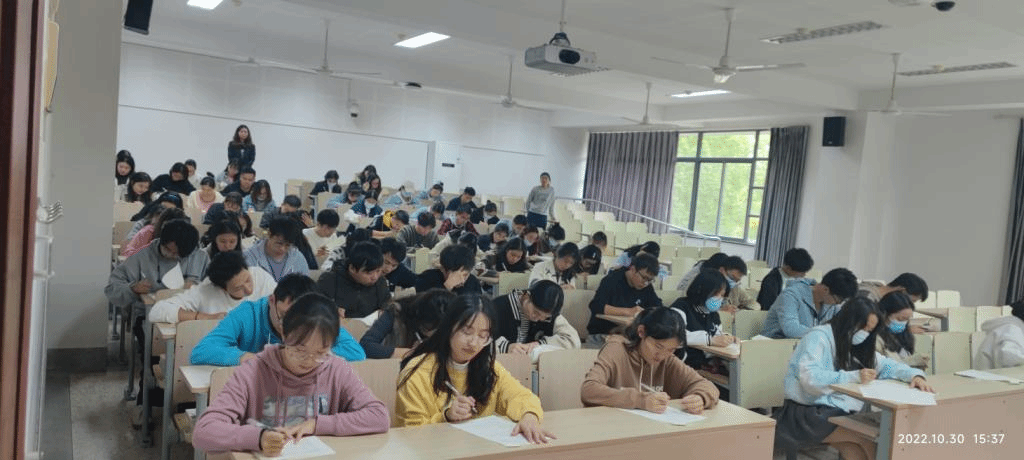 活动初赛采取笔试形式,三人组队报名参加。初赛的题目涉及范围广,贴合生活实际的同时也有一定的深度,既考察和提高了选手们的综合素质,也在一定程度上普及了相关基础知识。初赛现场,各位选手低头伏案,奋笔疾书,在答题纸上向大家展示前期认真准备的成果。