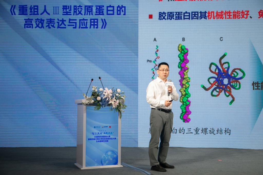 此次大赛共选出了19支参赛项目进行激烈角逐,涵盖生命健康多个领域的最新技术、商业前景和投资动向,为与会者提供了一场精彩纷呈的赛事。公司史劲松、龚劲松、邱立朋率队参加此次路演,并以《重组人Ⅲ型胶原蛋白的高效表达与应用》、《纳米冬青油/壳聚糖凝胶研发与产业化应用项目》为主题做项目答辩,其中《重组人Ⅲ型胶原蛋白的高效表达与应用》荣获三等奖。团队成员均表示此次会议不仅极大地拓宽了自己的学术视野,而且进一步激励了自己在生命科学与健康领域努力深耕。