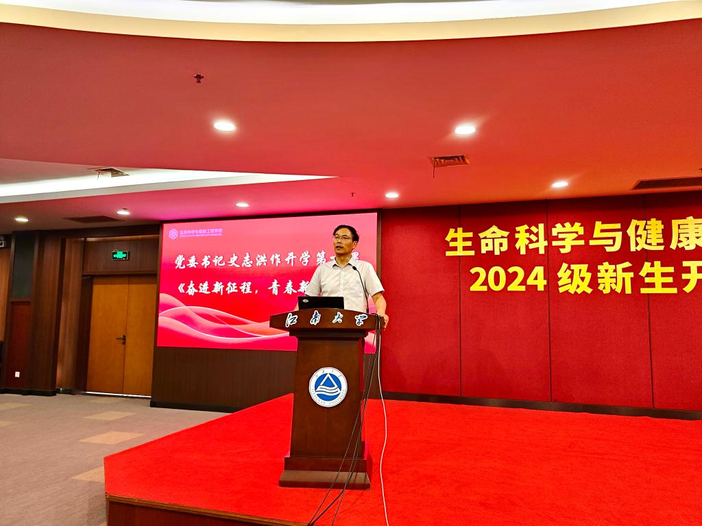 公司党委书记史志洪以《奋进新征程,青春新作为》为主题为2024级新生讲授思政第一课。他从严守党纪强党性、聚焦改革促共识、学思践悟担使命等方面展开,表达了对同学们成长成才的殷切期望,更向同学们展示了一幅未来无限可能的蓝图,他希望同学们坚定理想信念,明确目标方向,在人生的新阶段和公司发展的重要时刻,将个人成长自觉融入国家发展,成为新时代的见证者、开创者、建设者。他勉励生科学子坚守“红”的本色,胸怀大气,厚植家国情怀;磨砺“拼”的意志,砥砺锐气,涵养进取品格;练就“专”的本领,蓬勃朝气,不负时代年华,以青春之我创造青春之中国、青春之民族,在中国式现代化的伟大征程中,共答“教育强国,江南何为”的时代答卷。