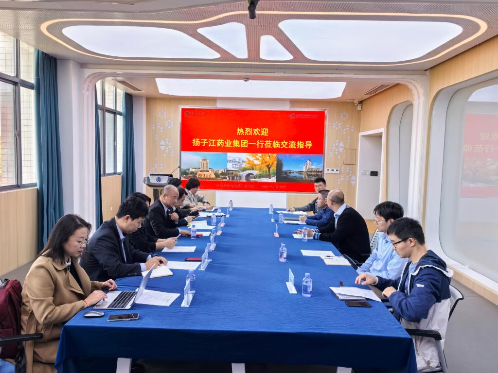 10月30日下午,扬子江药业集团战略顾问涂益华、董事长特别助理、研发体系负责人王如伟,药物研究院、投资商务拓展部、龙风堂中药研究院以及大健康事业部的主要负责人来访公司。公司副经理杨子毅,经理助理朱蕴韬、杨朋,龚劲松教授,宋伟副研究员等参加座谈。会议由杨子毅主持。