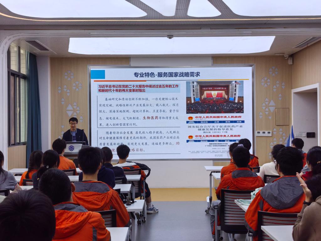 活动邀请经理助理杨朋、邵安东两位老师为同学们作公司情况介绍和专业科普讲座。两位老师以“什么是药物”、“药物是怎么发现的”为引,和同学们分享了中国医药工业的发展,结合国家提出的“健康中国”战略,分享了公司的发展历程、团队建设、人才培养、科学研究以及社会服务情况。