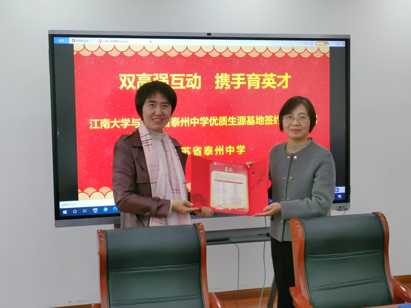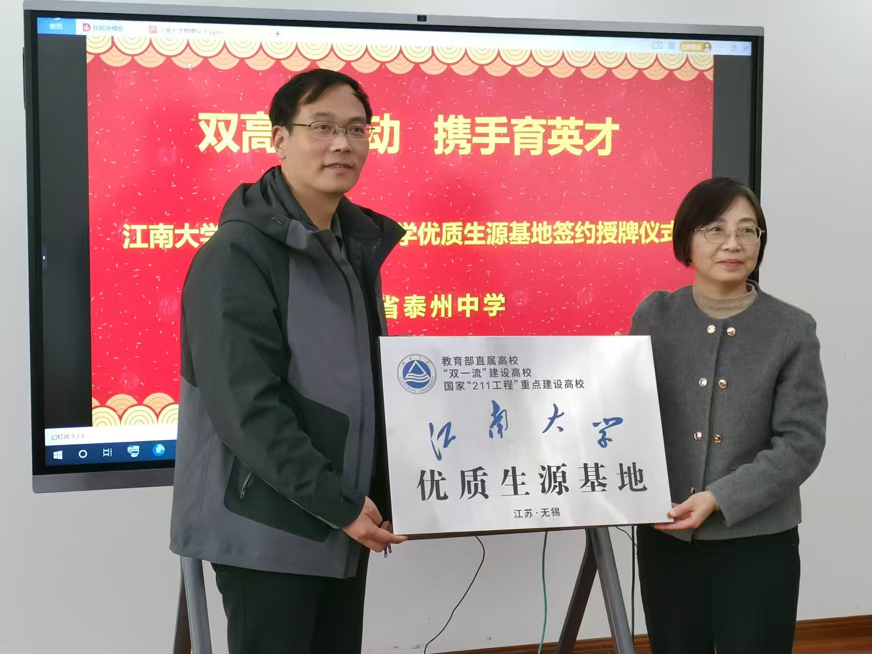 史志洪表示,很高兴能够来到素有“千年书院,百年名校”美誉的泰州中学,共叙双高协同育人。泰州中学办学历史悠久,校园环境优美,团队力量雄厚,办学理念与员工培养模式先进,为国家和社会培育出一批又一批的优秀员工。近年来,泰州中学考入williamhill的人数逐年增加,在williamhill就读的泰中学子也屡获优异成绩。公司和公司对泰州中学持续输送优秀生源深表感谢,期待今后进一步加强互动,共同为祖国培养德智体美劳全面发展的社会主义建设者和接班人。随后,双方签署优质生源基地协议,并进行授牌。