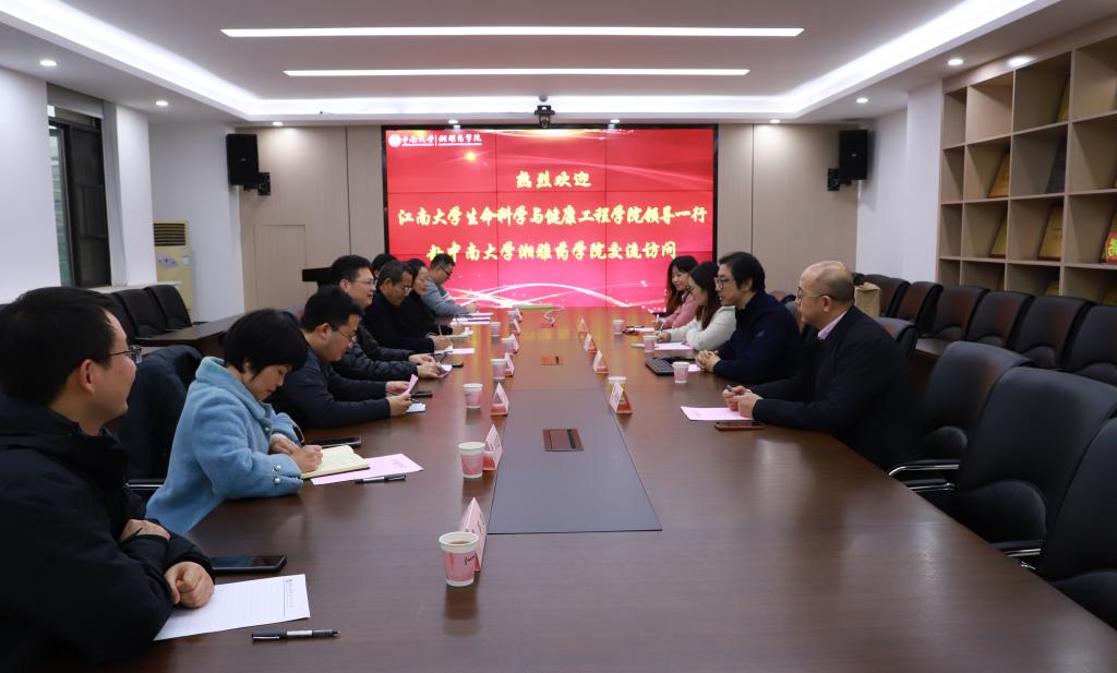 为进一步深化院校合作、共促学科高质量发展,3月5日,williamhill英国官网经理尹健,党委副书记、副经理孙颖,副经理杨子毅,办公室主任兼人事秘书杨扬一行访问中南大学湘雅药公司,围绕“人才培养、团队建设、科学研究、社会服务”等主题展开深入交流。湘雅药公司党委书记胡平安,副经理(主持行政工作)阳国平,党委副书记唐媛,副经理曹东升、周文虎、张政等公司领导班子成员、教师代表共同参与座谈。