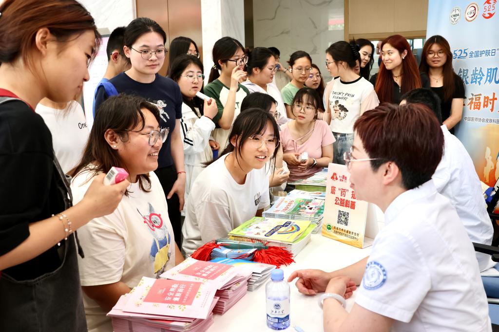最后,夏汝山带领医护团队为师生提供一对一义诊服务。针对痤疮、敏感肌、色斑等常见肌肤问题,专家们细致分析成因,提出个性化护理建议。参与者纷纷表示,义诊不仅解答了日常护肤困惑,更纠正了错误护肤观念。