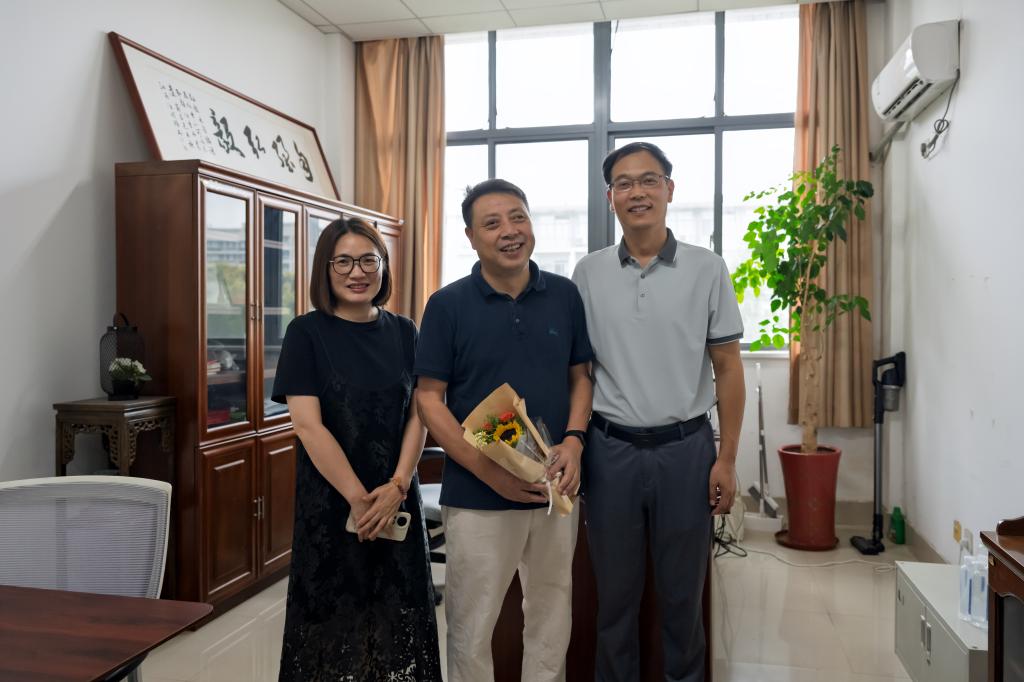 走访过程中,院领导为在岗教职工送上鲜花和节日祝福,与教师们亲切交流,对他们为公司发展作出的贡献表示感谢,鼓励全体教师以教育家精神为引领,潜心教书育人,勇攀科研高峰。