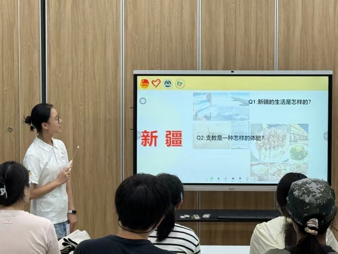 用一年不长的时间,做一件一辈子难忘的事。徐晨玥围绕“支教生活”、“教学内容”、“成长感悟”以及“招募选拔”等内容进行分享。她向大家讲述了自己在新疆那段充满热情与活力的支教时光,分享中既有支教生活的点滴,也有分别的不舍,她号召大家到西部去,到基层去,到祖国最需要的地方去,用脚步丈量大地,用奋斗诠释青春,才能体味不一样的人生,收获不一样的成长。作为全国第十七届支教团成员,苗文建从项目背景、报名流程、政策保障以及支教成长等方面进行介绍。他说:基层是最好的课堂,实践是最好的教材,支教虽然面临诸多挑战,但更是一次难得的成长机会,在支教过程中,不仅提升了自己的教学能力,更能让自己清晰感受到肩负的责任与使命。