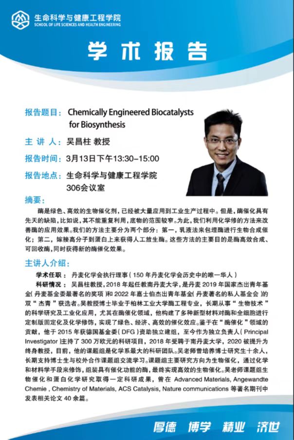 报告题目:Chemically Engineered Biocatalysts for Biosynthesis
