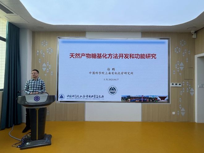 报告会上,徐鹏博士以“天然产物糖基化方法开发和功能研究”为主题,分享了其课题组所开展的基础性和应用性研究以及所取得的成果,包括确立碳苷和氧苷的立体选择性高效构建新方法;完成系列活性聚糖和糖缀合物的全合成和功能研究;构建活性糖苷和聚糖的化合物库。
