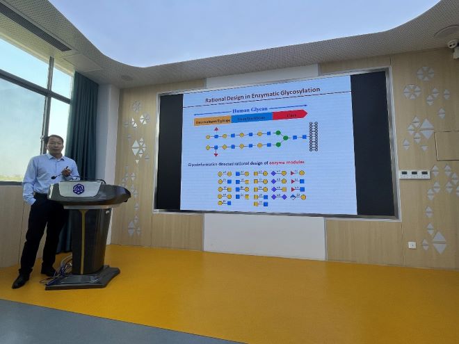 曹鸿志博士以 “功能糖链的酶法模块化组装”为主题,系统阐述了如何将有机合成的理念、策略与生物催化有机结合,实现对酶促反应过程的调控与操纵,突破糖基转移酶的底物限制,从而实现复杂人源糖链的系统性精准合成。