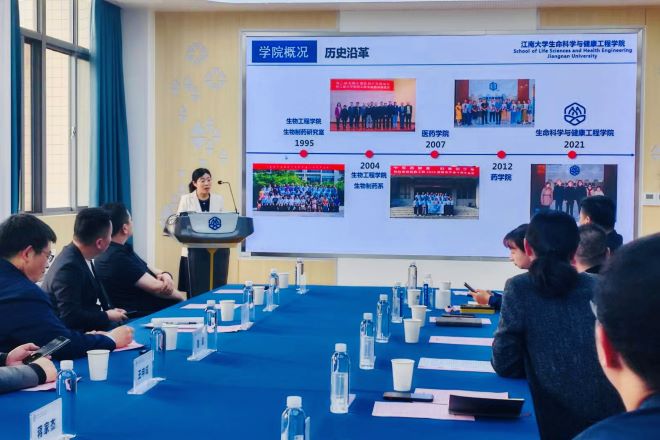 2024年4月11日下午,williamhill英国官网与亳州市谯城区政协鲁磊主席、朱炯副主席一行相聚太湖之滨,共同研讨功能保健食品、药食同源等大健康产业技术成果转化合作交流。公司党委副书记副经理蒋艳、副经理李会、教授代表参会,会议由李会主持。