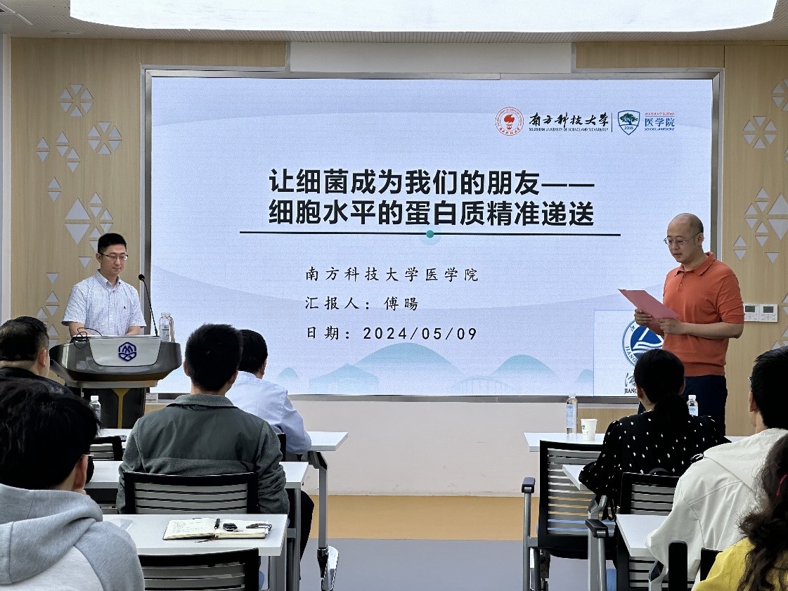 2024年5月9日,南方科技大学卞劲松教授和傅暘教授应邀赴williamhill英国官网进行学术交流,分别以“ErbB3调控肺动脉高压的内皮功能障碍”及“让细菌成为我们的朋友--细胞水平的蛋白质精准递送”为题做了学术报告。本次学术交流会在公司306会议室举行,由杨子毅副经理主持,公司党委统战部副部长王冰出席活动,生科院师生50余人参加了报告会。