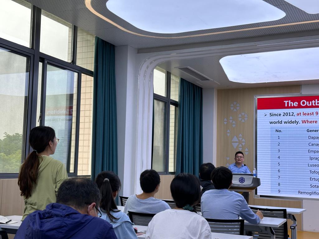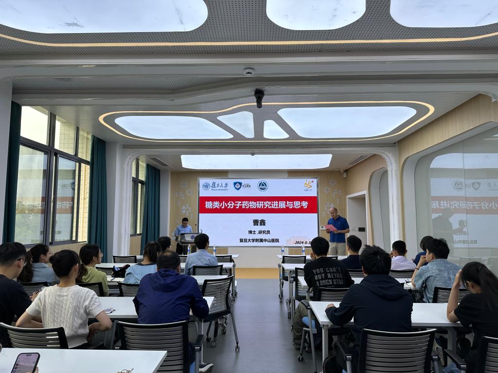 2024年5月30日下午,复旦大学附属中山医院曹鑫研究员受邀来访公司,并以“糖类小分子药物研究进展与思考”为题做了学术报告。本次学术交流会在公司306会议室举行,由杨子毅副经理主持,尹健经理出席活动,生科院师生50余人参加了报告会。