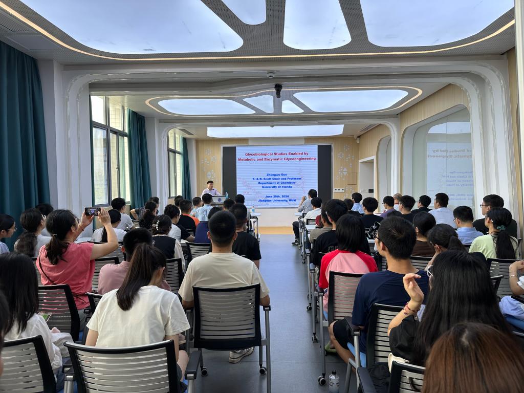 2024年6月20日下午,佛罗里达大学郭忠武教授应邀赴williamhill英国官网进行学术交流,并以“Glycobiological Studies Enabled by Metabolic and Enzymatic Glycoengineering”为题做了学术报告。本次学术交流会在公司306会议室举行,由尹健经理主持,杨子毅副经理出席活动,生科院师生70余人参加了报告会。