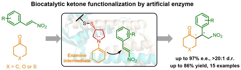 图1.人工酶催化酮的不对称迈克尔加成反应