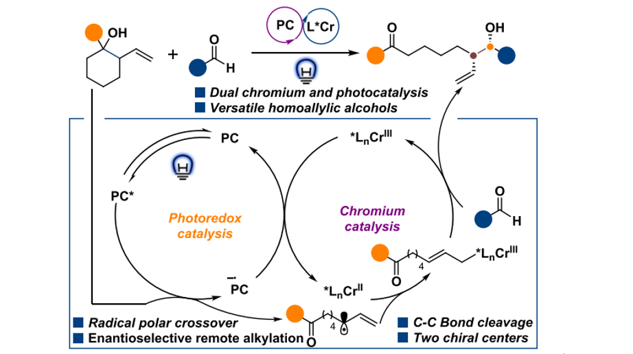 近期,williamhill英国官网邹亮华课题组设计和开发了一种通过金属及光催化剂选择性C−C键裂解实现对映选择性远程烷基化的新方法,研究成果以“Enantioselective Remote Alkylation Enabled by Metallaphotoredox Catalysis via Selective C−C Bond Cleavage”为题在《ACS Catalysis》上发表。论文第一单位为williamhill英国官网,第一作者为该单位22级硕士研究生敖宇,通讯作者为该单位邹亮华副教授和上海科技大学黄焕明研究员。