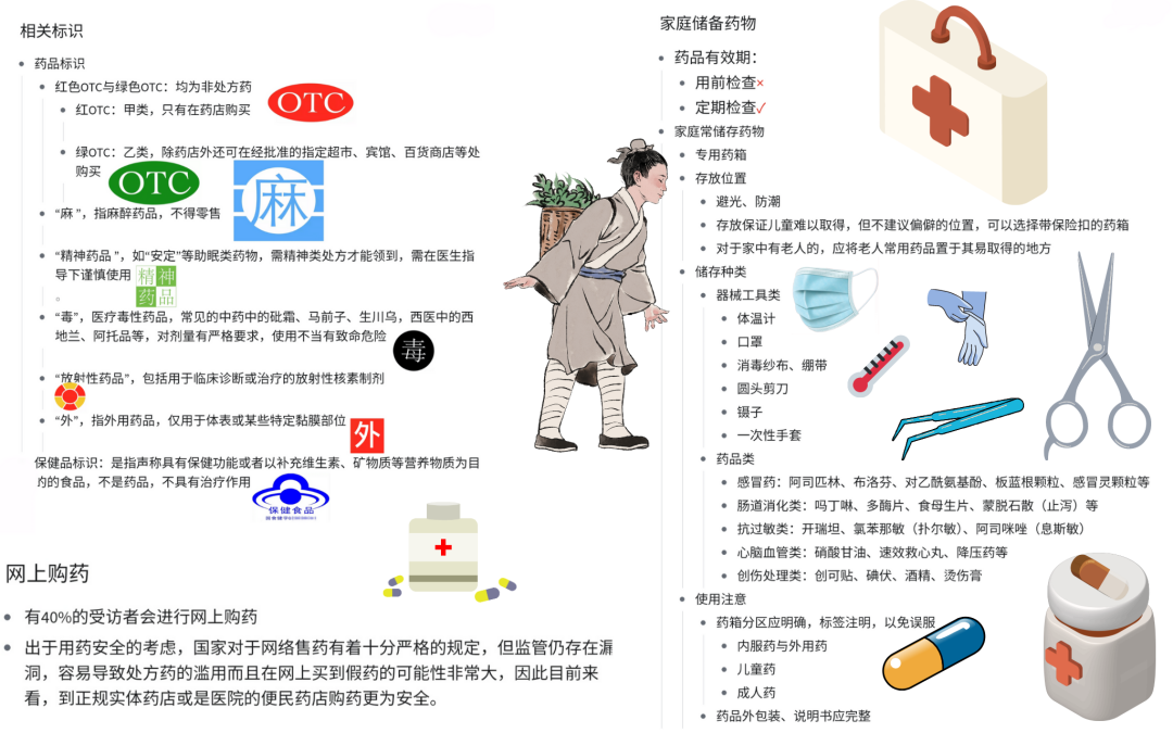8月中上旬,“安全用药科普,助力健康中国”研学实践团走进居民区、药店等场所,继续对当地居民尤其是中老年人进行安全用药的走访,内容包括购药习惯、对网上购药的认识、对药品标识的认识、家庭小药箱的使用以及对一些常见药品的认识等。调研过程中,实践团成员与老人们进行热情的交谈,在询问中倾听他们的故事,关心他们的生活起居,了解他们的期望和心声,给老人们带来精神上的关怀和温暖。同时,成员们还针对中老年常见慢性病(高血压、糖尿病)进行了针对性的认知科普指导。结束后,团队成员们对收集的数据进行分析,整合出用药知识薄弱与不当的地方,为之后更好的科普宣传打下了基础。