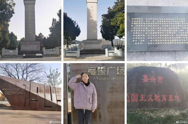 实践内容:红色的革命是一盏明灯,每一位革命者都是传灯人。顾佳瑶同学和高溪悦同学分别在嘉兴市和吉林磐石市进行党史学习活动。顾佳瑶同学和父母参观了位于嘉兴市海盐县南北湖景区荆山顶的革命烈士纪念碑,学习了英雄先烈的事迹,增强了责任感和使命感。高溪悦同学前往吉林省磐石市参观东北抗日战争纪念馆基地,一方面更加懂得和平的来之不易,另一方面增强了爱国爱党意识,认识到作为一名新时代老员工,更应该坚持续承和发扬中华民族爱国主义精神。