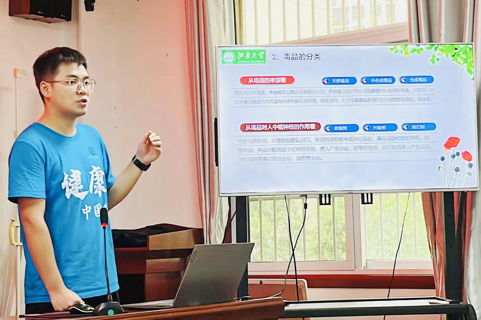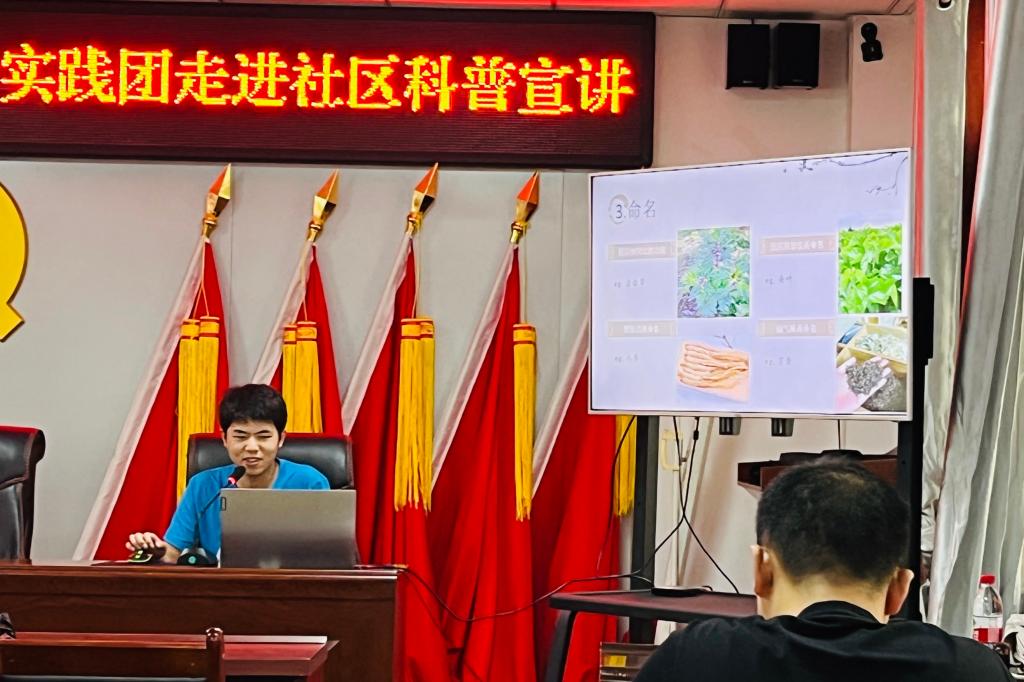 7月13日下午,实践团一行到风华社区开展健康宣讲活动。实践团成员用通俗易懂的语言,深入浅出地为社区居民讲述了毒品、中医药文化和急救知识的相关内容。成员王子玉以“珍爱生命,远离毒品”为主题,从毒品的鉴别、防范、危害以及毒品与药品的区别四个方面进行讲解,引导社区居民树立防毒意识、提升拒毒能力。成员崔恒源为大家科普了海姆立克急救法的急救方法、患者征象和急救原理,并通过实操演练帮助居民掌握急救技能。成员夏锦钊围绕中药的分类、炮制方法、功效、用药误区等方面,在提升居民用药安全意识的同时宣传推广了中医药文化。结束之余,实践团成员对居民提出的问题进行了详细解答。本次宣讲活动旨在将健康知识带到社区,让健康知识深入人心、让健康理念走进群众。