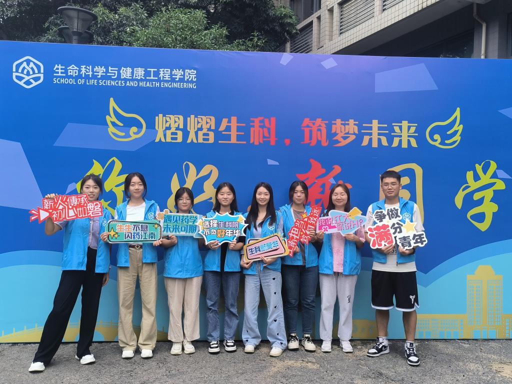 小蓝们迎接新生,帮助大家搬运行李,指引公司报到处,用热情周到的服务和真挚的关爱让新同学们体会到了生科院大家庭的第一份温暖。